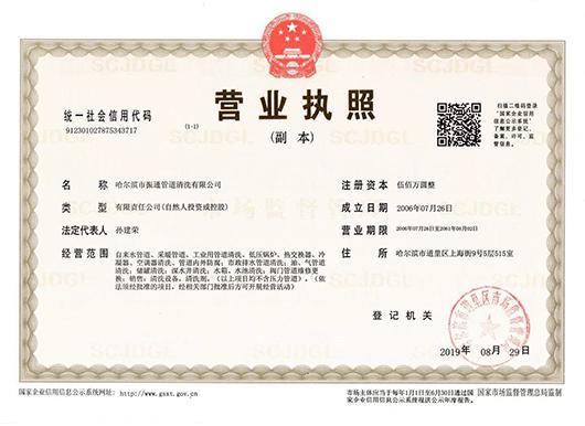 •   哈爾濱市振通管道清洗有限公司,是集管道清洗技術(shù)研究、清洗設(shè)備研發(fā)制造和管道清洗施工服務(wù)三位一體的科技型管道清洗技術(shù)服務(wù)公司。是國(guó)家清洗行業(yè)協(xié)會(huì)會(huì)員單位,具有協(xié)會(huì)頒發(fā)的物理清洗資質(zhì)B級(jí)、化學(xué)清洗A級(jí)資質(zhì)和安全生產(chǎn)作業(yè)證書(shū)。是黑龍江省高新技術(shù)企業(yè),是全國(guó)科技創(chuàng)新先進(jìn)單位。具有國(guó)家發(fā)明專(zhuān)利2項(xiàng),實(shí)用新型專(zhuān)利8項(xiàng)?,F(xiàn)有人員45人,其中科技人員17人。是民用供水管道清洗行業(yè)龍頭企業(yè)。公司成立二十多年來(lái),應(yīng)用先進(jìn)的氣壓脈沖清洗和化學(xué)清洗等技術(shù),為全國(guó)自來(lái)水公司、供暖公司做管道清洗技術(shù)服務(wù)共400多項(xiàng),有效的為使用單位凈化供水水質(zhì)、提高供暖溫度,均收到了非常理想的效果,受到了用戶(hù)廣泛好評(píng)...